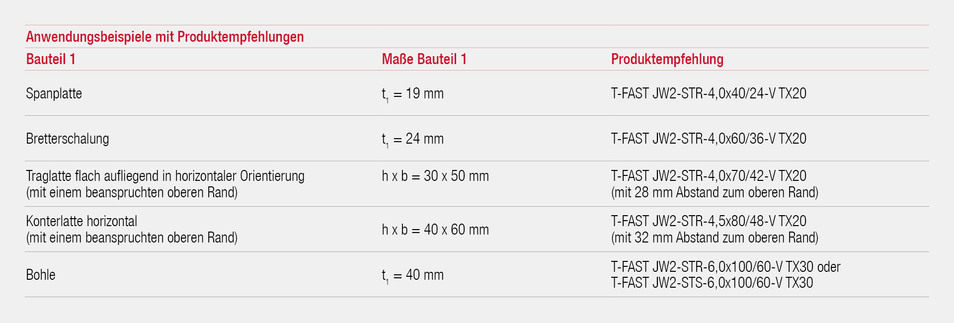 T-FAST® Teilgewindeschrauben aus Kohlenstoffstahl können vielseitig zur Verbindung und Befestigung von Bauteilen aus Holz, Holzwerkstoffen und Stahlblech an Bauteile aus Holz in tragenden und nicht tragenden Bereichen verwandt werden und kommen unter anderem bei der Befestigung von Aufsparrendämmungen, im Treppenbau oder Innenausbau zum Einsatz.